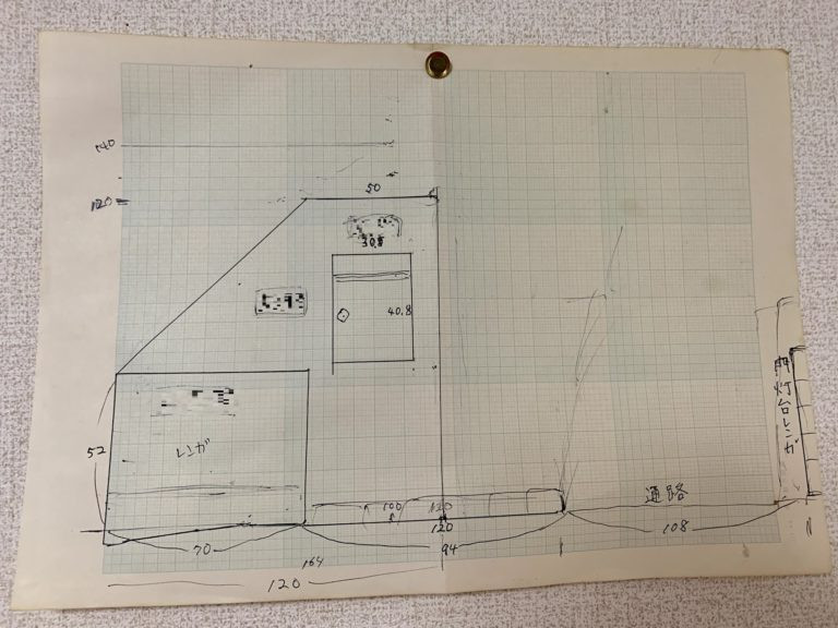 植栽の根で変形をしていたレンガ積みの花壇。倒れかけた郵便ポストを直して、綺麗にしたい!!と思いながら、どこへ頼んで良いものかと悩まれておられたM様。お伺いしたときはこんな感じにしたいなとスケッチを準備されていらっしゃいました。